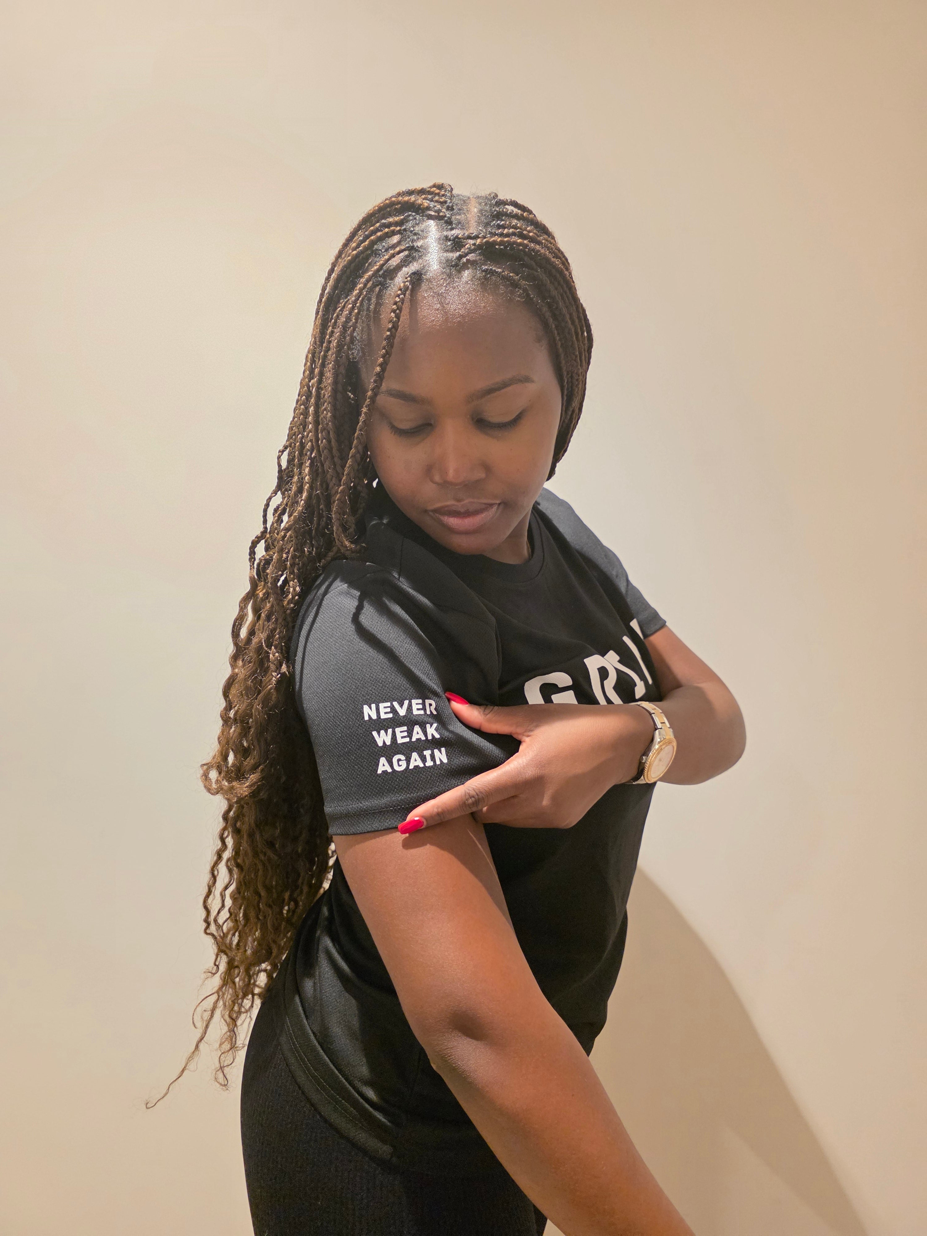 Le T-shirt noir pour femme GRIND est dédié à celles qui se lèvent chaque jour pour devenir plus fortes, physiquement et mentalement. Chaque fibre de ce vêtement reflète la discipline et l’intensité de l’effort. Ce n’est pas qu’un T-shirt — c’est un symbole d’ambition, de constance, et de dépassement. Never Weak Again, inscrit sur la manche, rappelle à chaque instant que la faiblesse n’est plus une option.