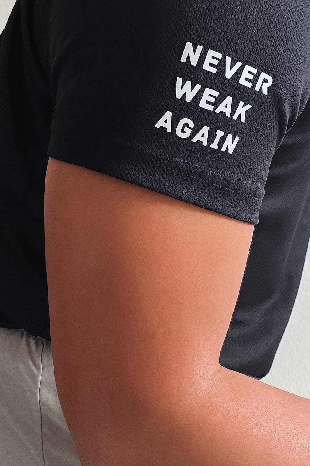 Son message fort sur la manche — Never Weak Again ou Don't Cheat The Grind — te rappelle chaque jour que l’abandon n’est plus une option.